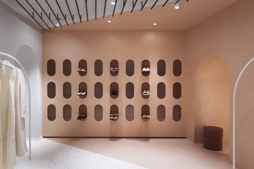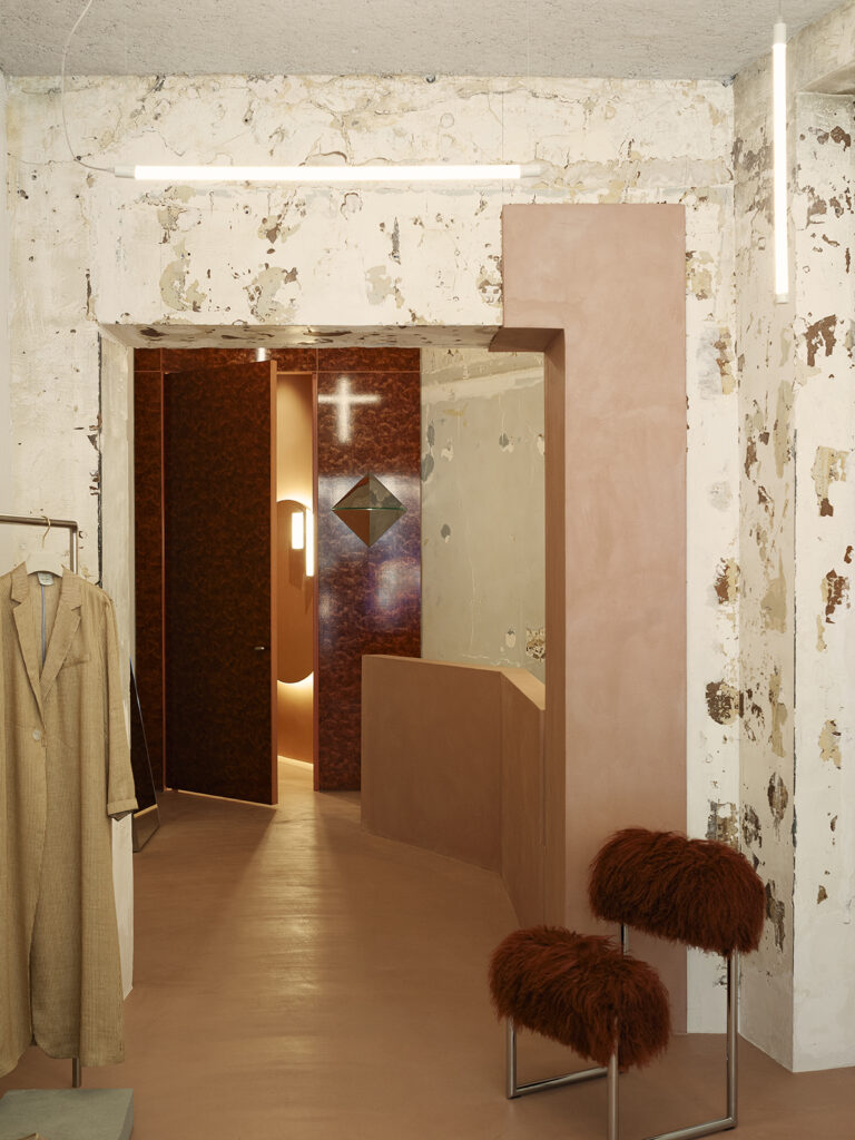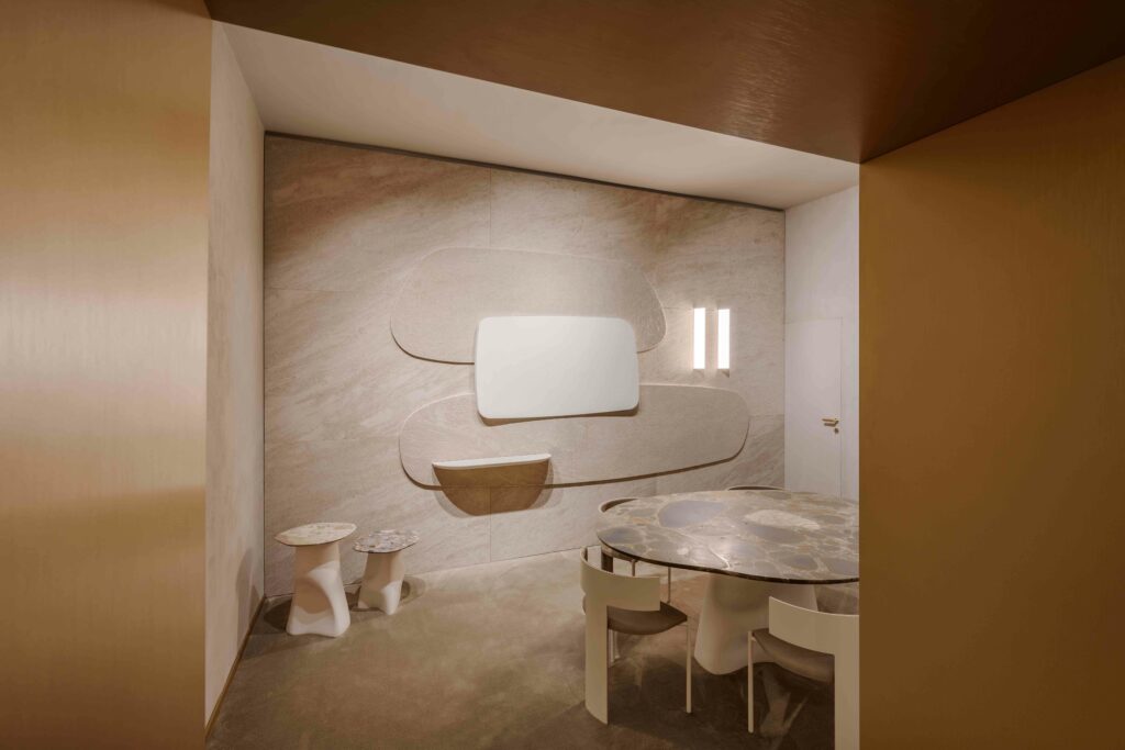 Studiopepe introduced unexpected material combinations – such as pink microcement with green onyx marble – and sculptural forms that challenge traditional boutique layouts. The use of color as a structural element, rather than simply as decoration, also marks a bold and unconventional approach.