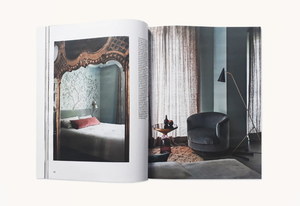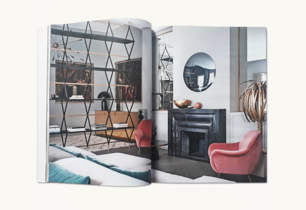 This townhouse exemplifies the Studio’s dedication to detail, including the most unexpected, from the grand made-to-order marble fireplace to the family picture collection on display on the staircase, to the ceiling of the son’s room, a tribute to Giò Ponti.