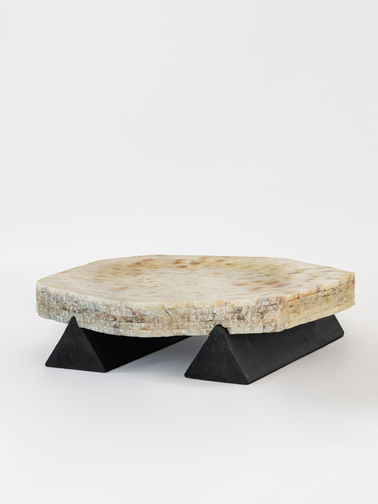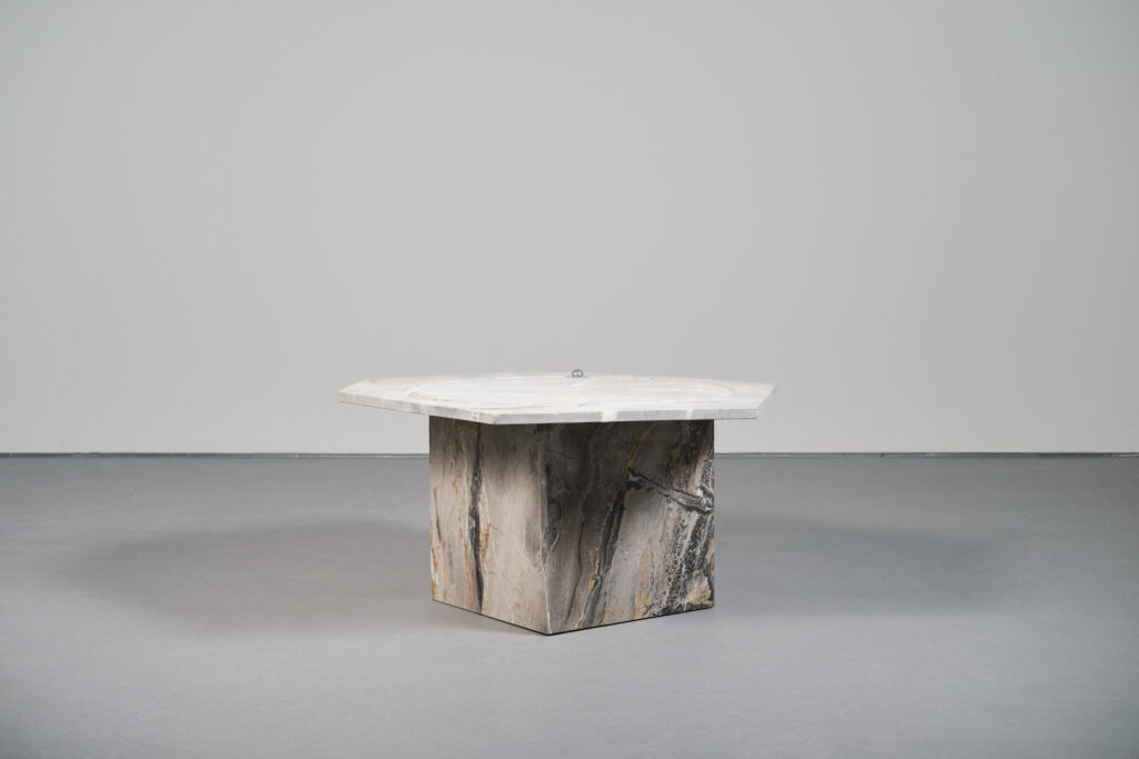 For the collective exhibition De-sacralized, presented by Galerie Philia during Salone del Mobile, the studio designed a coffee table, concieved as small architecture, boasting six facets and symbolizing spiritual balance, draws inspiration from ancient Italian baptistries, which often feature octagonal or hexagonal plans.
