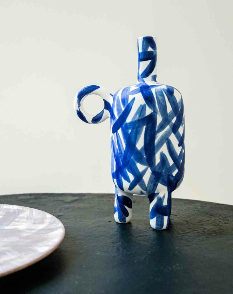 Animaletti, a family of hand-painted and hand-modeled zoomorphic ceramics, takes inspiration from domestic apotropaic sculptures, artifacts associated with various cultures, from pre-Columbian to Egyptian and Etruscan.